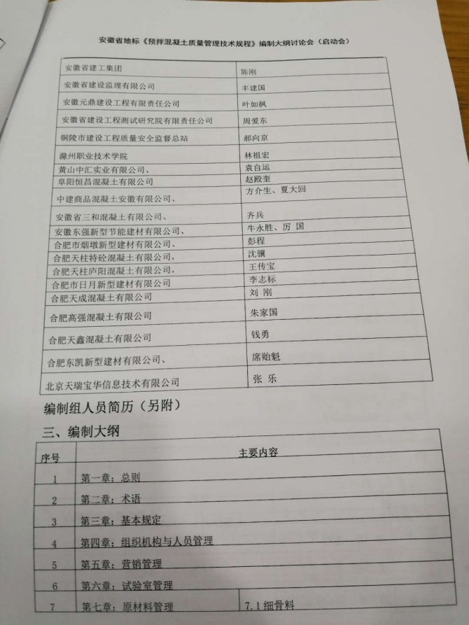 2018年6月26號安徽地方標準《預拌混凝土質(zhì)量控制技術規(guī)程》編制工作組召開編制大綱討論會(啟動會),我公司作為參編單位,由公司技術負責人牛永勝總經(jīng)理代表參與此次會議的討論。